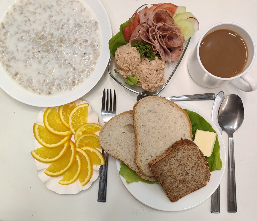 Śniadanie dieta podstawowa zamiast pasty z makreli jest sałatka rybna